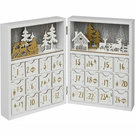 - Le calendrier de l’Avent en bois se compose de deux parties, comportant chacune 12 petits tiroirs à remplir : chocolats, petits jouets, petit mot… Laissez libre court à votre imagination pour faire patienter les enfants.