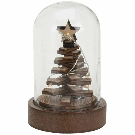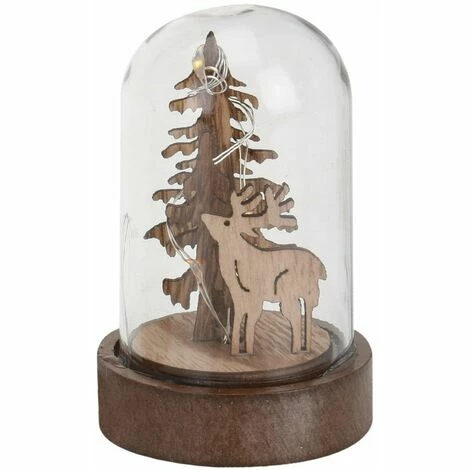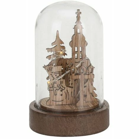 - La cloche en verre lumineuse de Noël est très chaleureuse avec son éclairage LED blanc chaud et sa sculpture en bois. Elle est idéale en décoration de table ou pour s’intégrer au sein de vos décors de Noël.