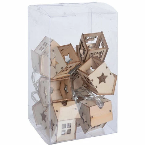 - Cette guirlande composée de 10 jolies maisonnettes en bois, chacune équipée d’une petite LED blanc chaud, viendra créer un effet magique dans votre décoration intérieure.