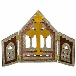 - Esthétique, ce village de Noël est orné d’une fontaine à eau multicolore, d’une maisonnette et du traîneau du père Noël avec ses rennes.